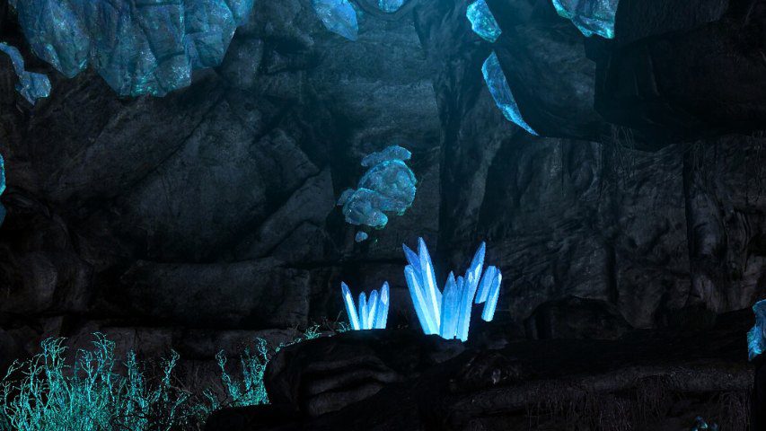 A serene and colorful cave, Mirror-Made Mausoleum is a cave adorned with enormous crystals that grant this place an almost otherworldly illumination, as the light is reflected between large pieces of Welkynd and geodes rich with gemstones and ore. Feasting off the unique crystals, this cave is inhabited by the fauna usually found within the Forgotten Vale. It is located in Crystal Cavity.
